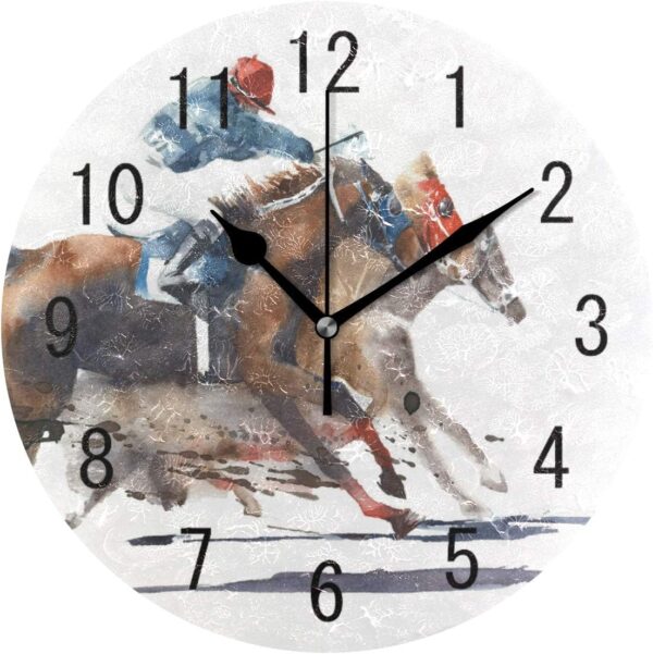 Mnsruu Wall Clock Measure: 0.8 x 0.01 Inch (24 x 0.5 cm). Material: Acrylic, oil Painting Dial, no frame. Design: Silent Non-ticking round wall clock (1 “AA” battery is required, not included). Function: It can be hung on the wall or placed on the desk. Beautify your space, bring different color to your space. Modern looking clock blends in with many different furnitures, different color walls, or decorative wall paintings.